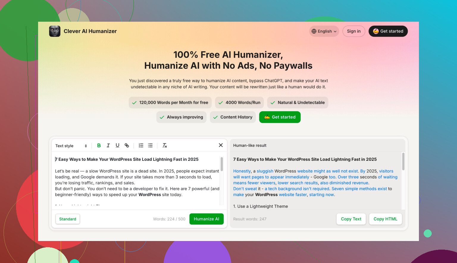 - Use tools like Clever Free Ai Humanizer as a first step. It’s free, doesn’t lock you behind sign-ups (at least last week when I tried), and tends to keep your original intent mostly intact without turning your text into mush. Sometimes it’s actually less janky than the usual suspects.