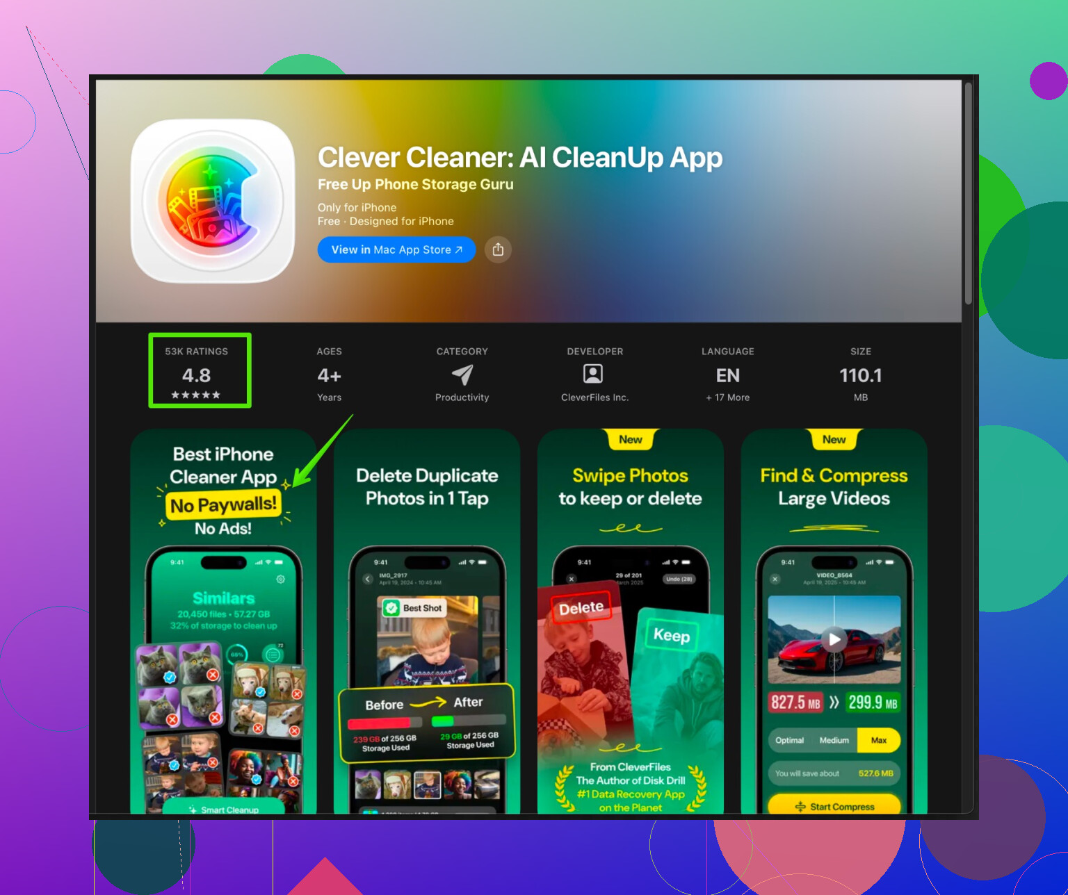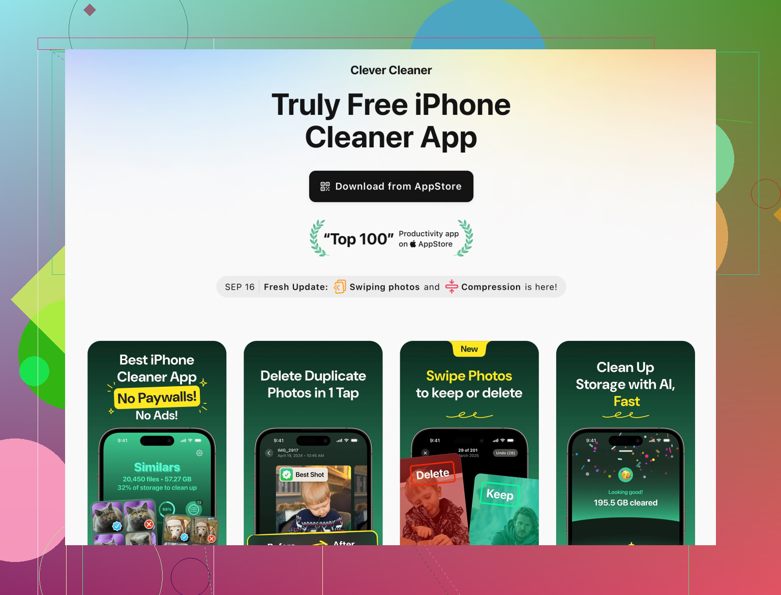 Si quieres algo que te ayude a limpiar basura sin tener que adivinar qué borrar, puedes probar la app Clever Cleaner para iPhone. Se centra en desorden, archivos temporales y datos innecesarios, y te ayuda a liberar espacio manteniendo a salvo cosas como fotos importantes, contactos y los datos principales de las apps.