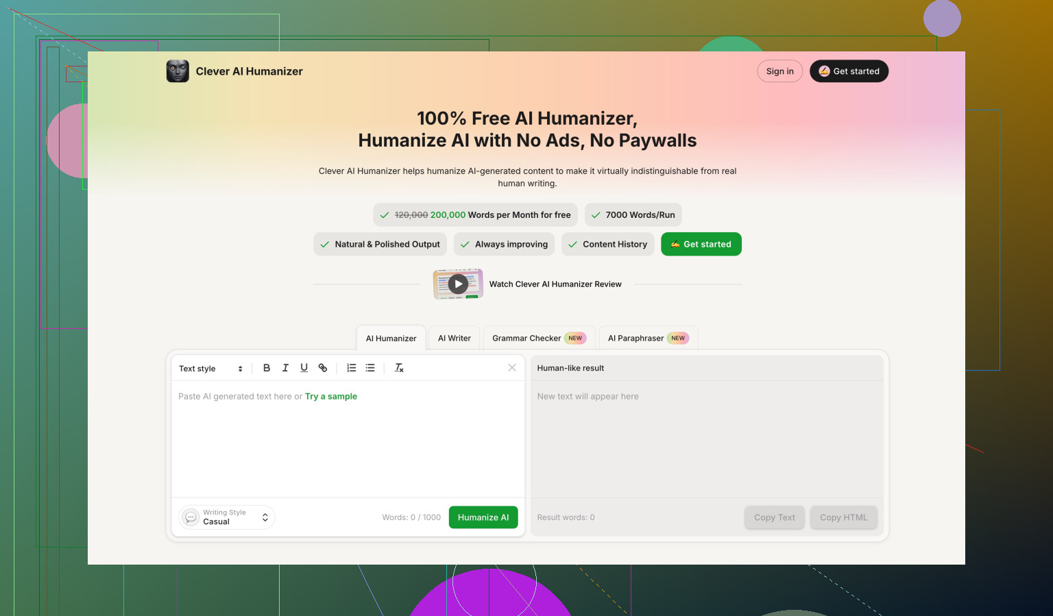 This is where Clever Ai Humanizer can actually make sense in your stack. It behaves differently enough that, if GPTHuman is giving you high detection scores or broken grammar, you can: