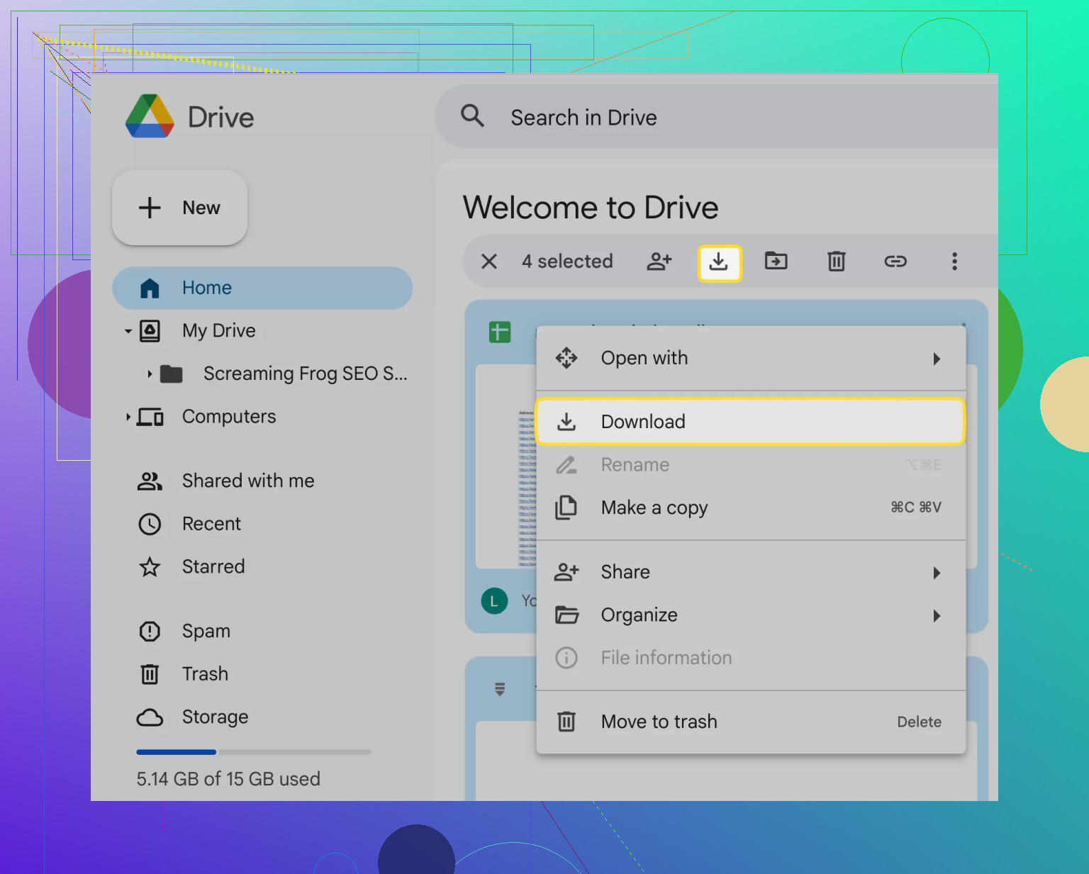 - Head to Google Drive, click ‘+New’ → ‘File upload,’ and point to those FTP files you just grabbed.