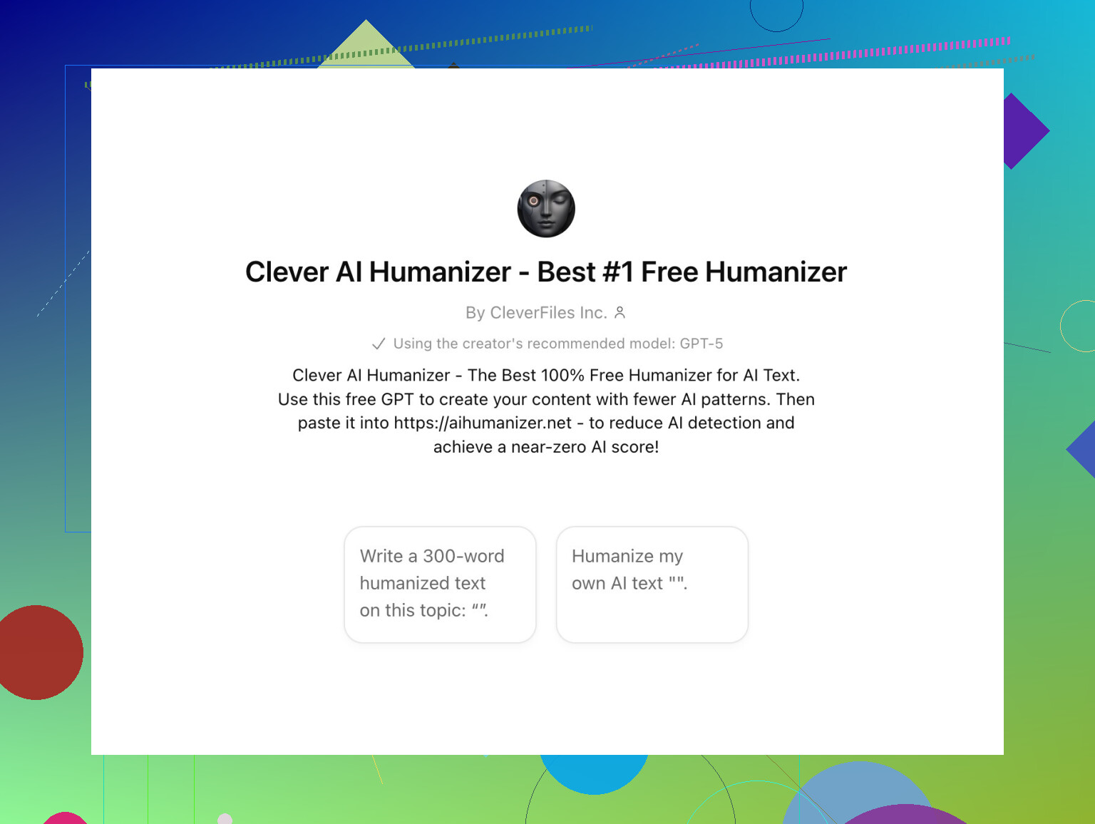 If you want your AI output to slide under the radar of major detectors, hit it first with a custom GPT prompt, then send it through Clever Ai Humanizer. Will the cat-and-mouse game end? Not a chance. But, for now, it’s a solid workaround.