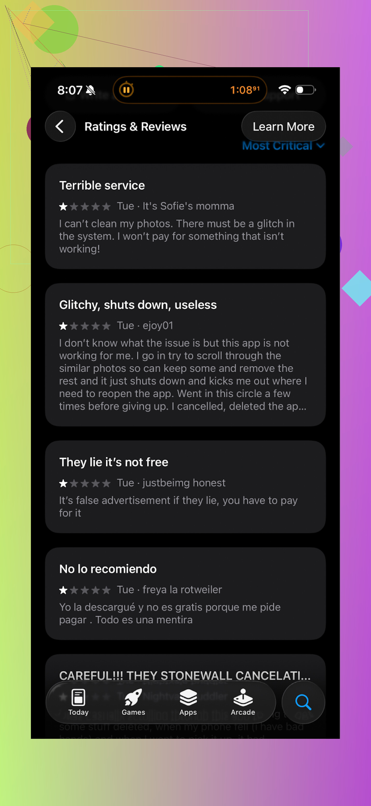 @mikeappsreviewer focused more on how annoying Cleanup is to use for storage and mentioned switching to Clever Cleaner App instead. That is actually a different threat model: a cleaner mainly needs thumbnails and metadata to group junk; an AI object remover needs the full image contents and often higher resolution.