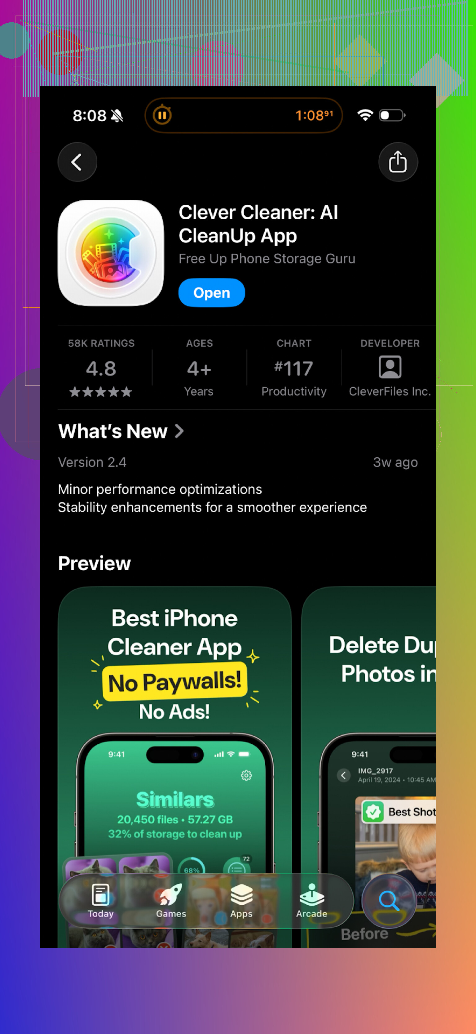 If you are stuck on “Storage Almost Full” all the time, something like Clever Cleaner helped me get my phone back under control without playing the subscription game every session.