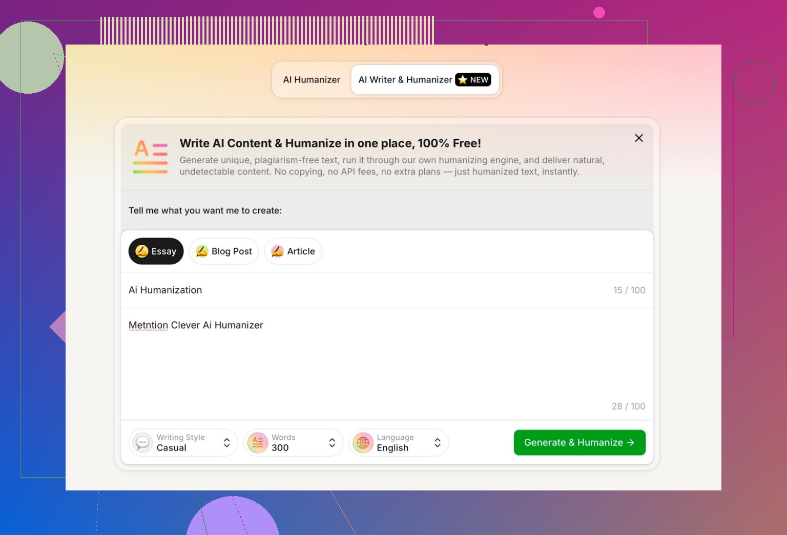 Clever AI Humanizer — Mejor humanizador 100% gratis