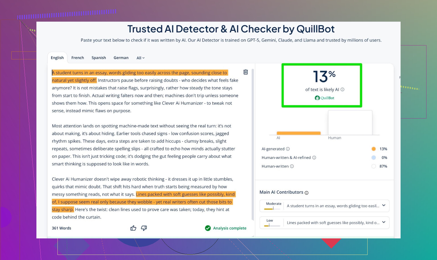 - En piezas largas para clientes, la mayor señal de alerta no son solo los patrones de frase. Son el pensamiento superficial, las estructuras previsibles y los ejemplos genéricos. Clever AI Humanizer casi no hace nada frente a eso. Así que si la fuente es texto insípido de un LLM, el resultado sigue siendo insípido, solo que más fluido.