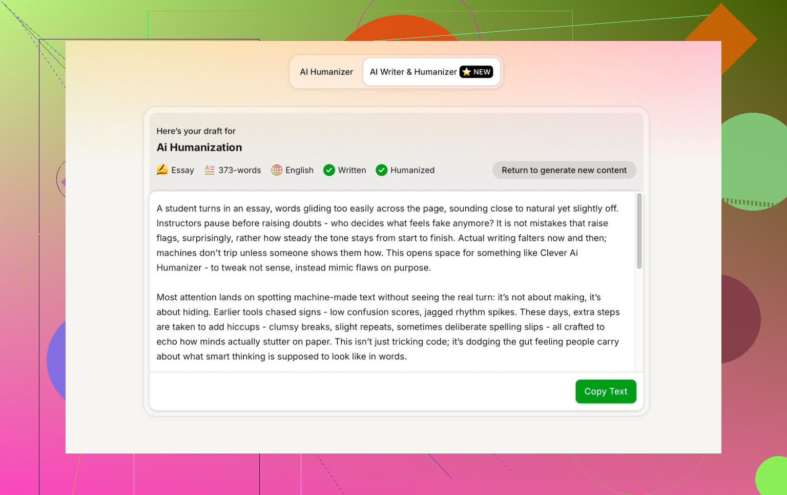 Si las ideas ya son tuyas y solo usaste IA para ampliar/reordenar, Clever AI Humanizer hace un buen trabajo quitando la sensación obvia de “esto salió directo de un chatbot”.