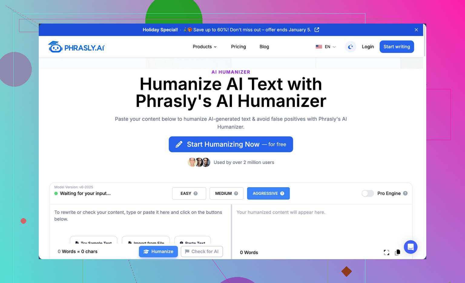Phrasly tends to wash a lot of that out. So yeah, it’s mostly rephrasing, not really humanizing.