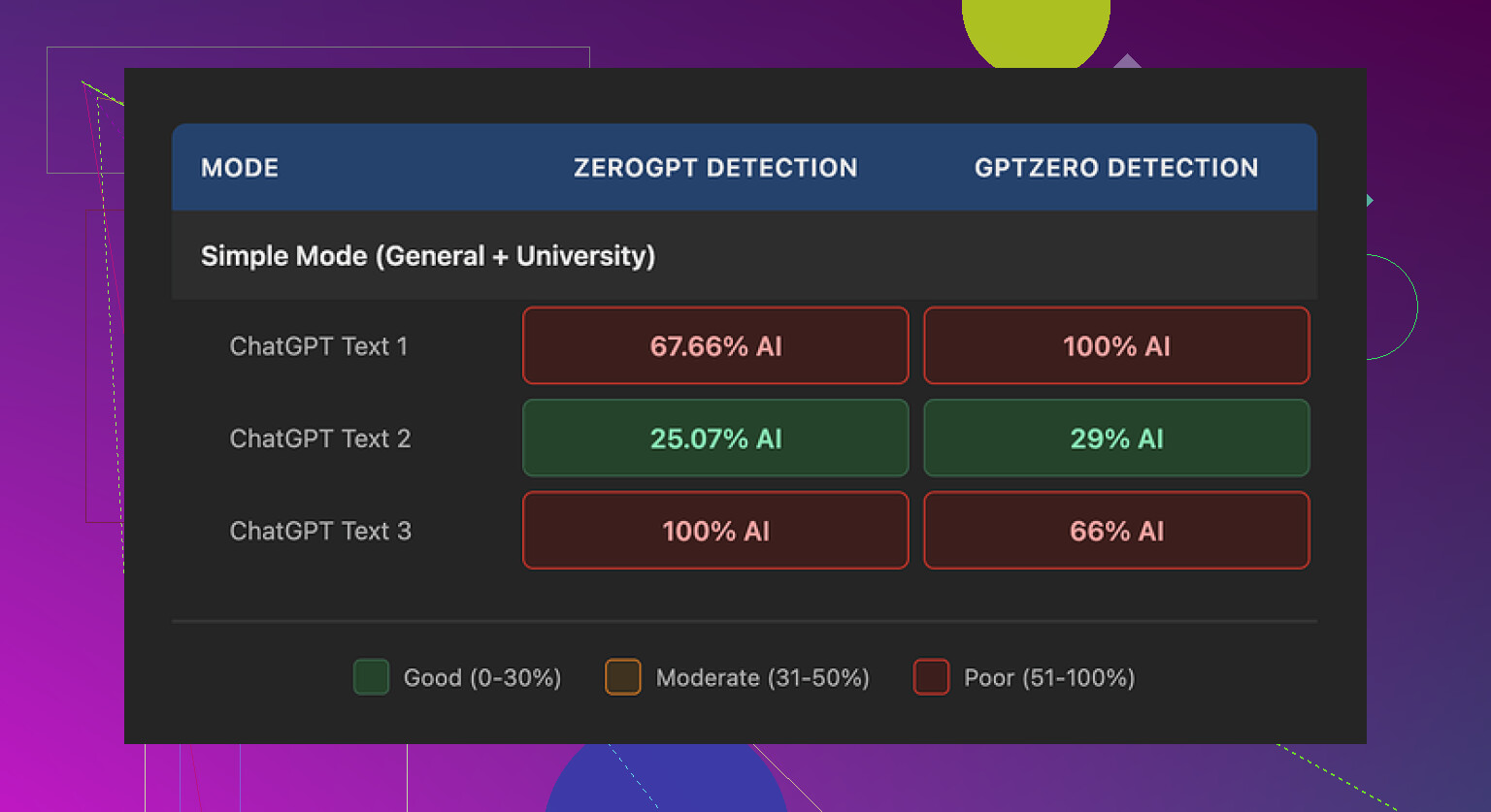 • Algunos fragmentos pasaron GPTZero más a menudo, pero luego Copyleaks o ZeroGPT los marcaban de todos modos.